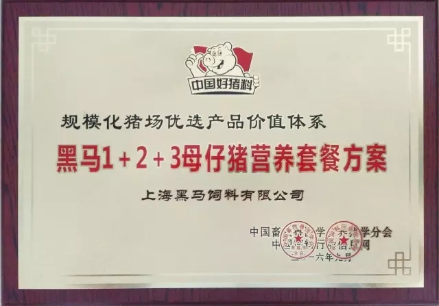 2016年9月4日,由中國畜牧獸醫(yī)學(xué)會養(yǎng)豬學(xué)分會和中國飼料行業(yè)信息網(wǎng)主辦的“第四屆母仔豬大會”暨“中國好豬料·第四季”頒獎盛典在北京溫都水城拉開帷幕。我司的“1+2+3母仔豬營養(yǎng)套餐方案”獲得“規(guī)模化豬場優(yōu)選產(chǎn)品價值體系”榮譽(yù)稱號。