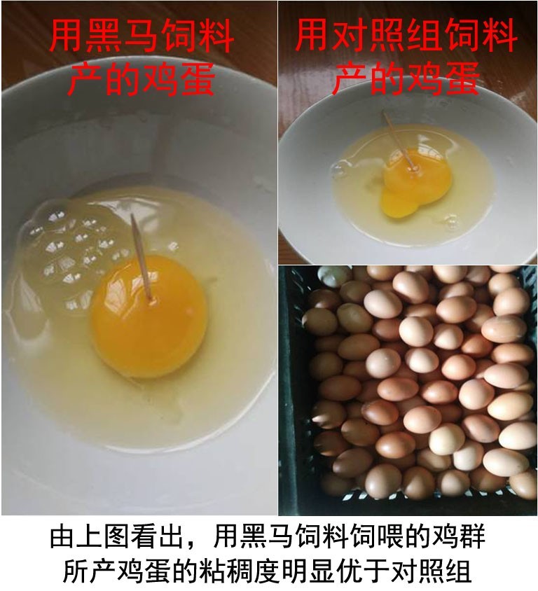 由上表可以看出,使用黑馬飼料5000羽蛋雞每天可節(jié)省飼料8.1元,每日雞蛋增加的收入是12.6元,照此生產(chǎn)性能推算,每10000羽蛋雞使用黑馬料1年比對照組要增加收益15111元。