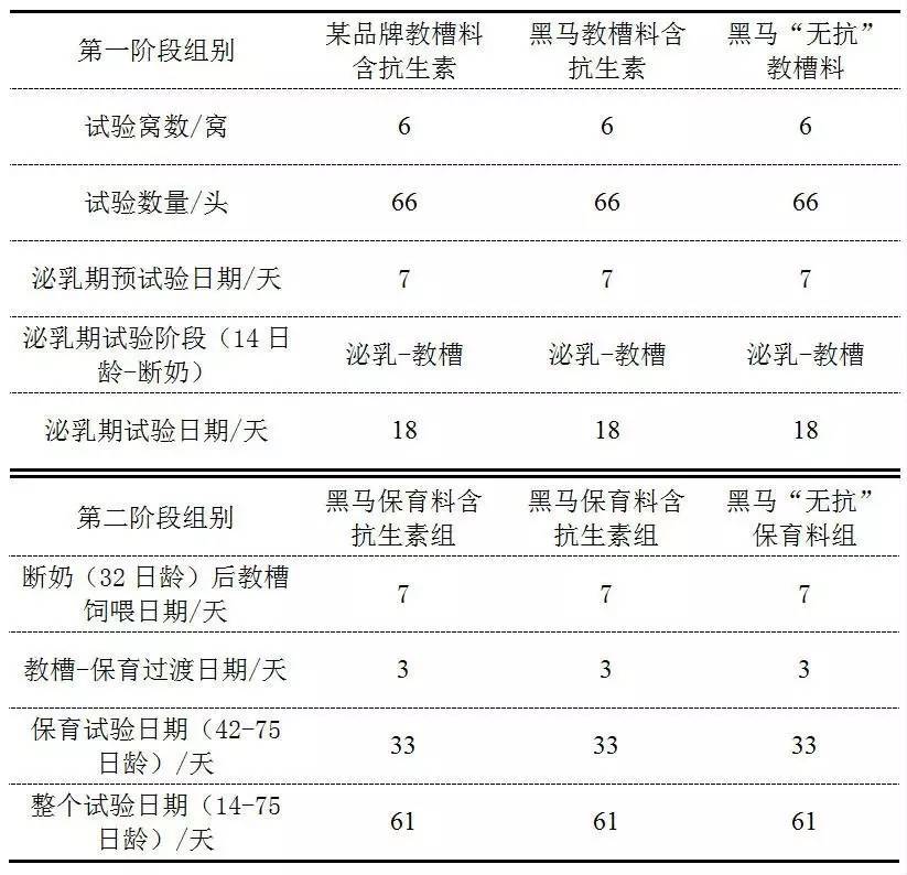 驗證黑馬“無抗”教槽料和保育料在規?;i場中的應用效果。