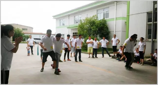兩人三足特別有趣味性,有看點。看似簡單的動作卻是充滿了挑戰。有的選手將布條綁在踝關節,有的選手則綁在小腿近膝蓋的位置,跑道上演著各種戰術與技巧的大比拼,選手們或走或跑。有人摔跤了兩人相互扶起來調整步伐又繼續沖刺,各組隊員分秒必爭,勢必一決高下。這項比賽讓我們見識到了員工的團結協作,堅持不懈與敢于挑戰的精神。
