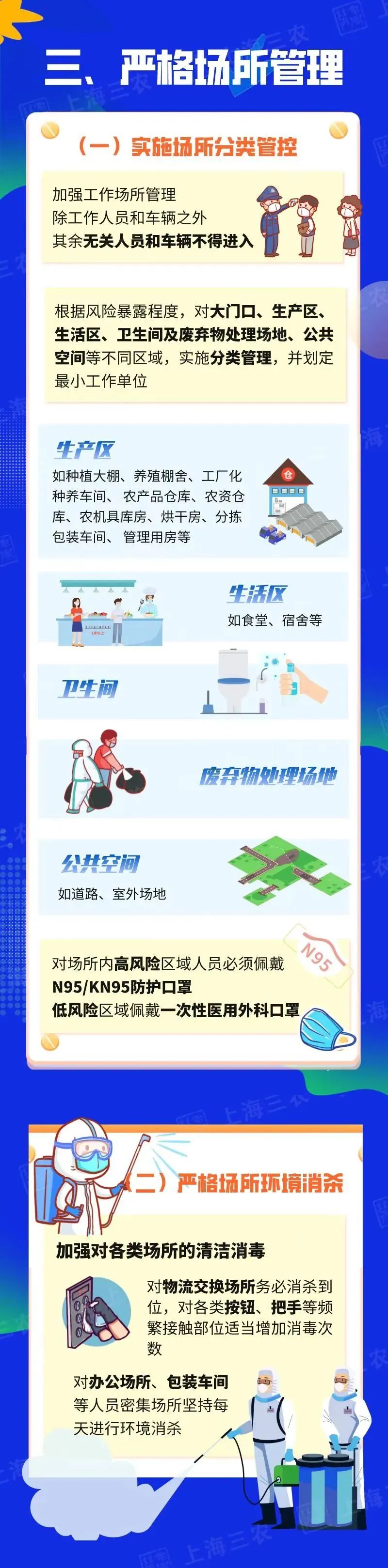 您當前所在位置:首頁 > 新聞中心 > 行業資訊 行業資訊 一圖讀懂 | 上海市農業生產單位復工復產疫情防控要點 在采取嚴格的閉環管理,做好人員消毒、環境和車輛消殺工作,并按時做好必要的核酸檢測和抗原檢測后,是可以保證產品供給安全和穩定的。 分享到:點擊次數: 更新時間:2022-04-26 17:30:18 【打印此頁】 【關閉】 上一條:五一國際勞動節 | 向最美勞動者致敬! 下一條:兩部委:畜禽養殖場所和飼料獸藥生產、屠宰加工企業采取閉環管理,獸藥、動物疫苗等物資經規范消殺后允許流通