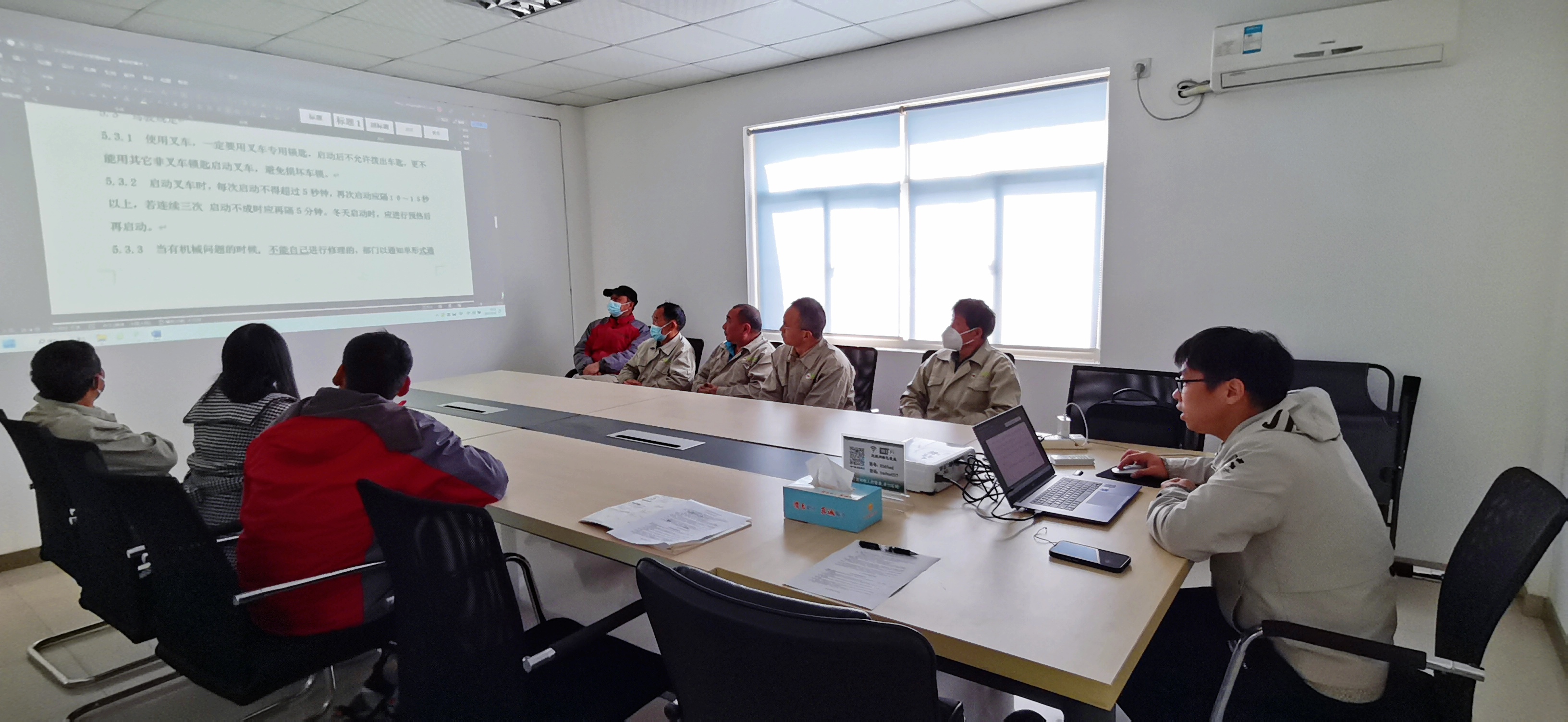 本月的培訓(xùn)由行政人事部牽頭,生產(chǎn)部主導(dǎo),并邀請(qǐng)了在廠區(qū)內(nèi)即將開(kāi)展作業(yè)的第三方工作人員一起參與。培訓(xùn)的主題是叉車的安全操作和登高作業(yè)的要求與管理。