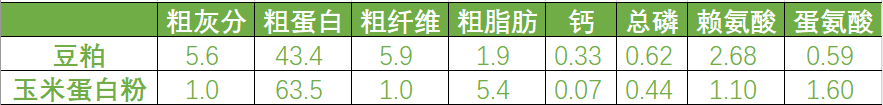 玉米蛋白粉與豆粕營養(yǎng)指標對比(%)